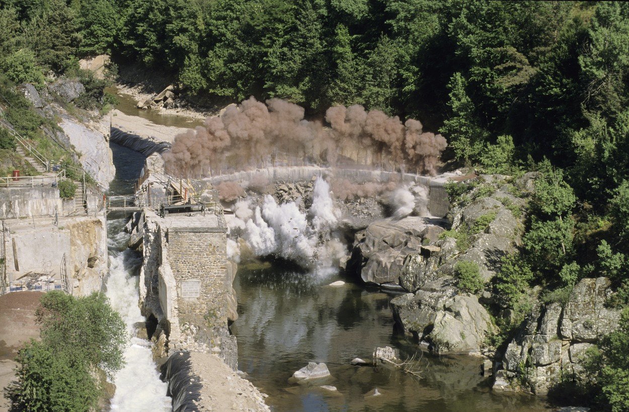 1998 : Démantèlement du barrage de Saint-Etienne-du-Vigan, 12m de hauteur, sur le haut bassin de l’Allier