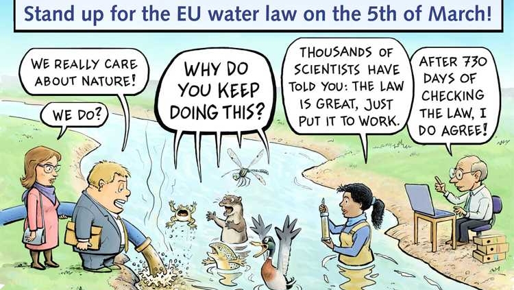 Le 5 mars prochain se tiendra la réunion des ministres du Conseil (Environnement) à Bruxelles qui abordera l’évaluation de la législation sur l’eau. En amont de cette rencontre nous tenons à attirer l’attention sur l’importance de cette évaluation pour la santé de la ressource en eau douce en Europe. Nous encourageons les ministres à suivre les 375 000 citoyens, 6 000 scientifiques et plus de 130 organisations de la société civile et à prendre fermement position en faveur du maintien de la directive-cadre sur l’eau dans sa forme actuelle.