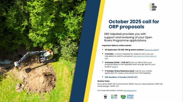 * Open Rivers Programme est une fondation néerlandaise financée par Arcadia. La fondation vise à restaurer les rivières européennes menacées en soutenant des interventions qui conduisent à la suppression de petits barrages et à la restauration du débit des rivières et de la biodiversité.